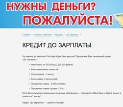 Сроки кредитования в МФО колеблются от 3-х дней до 1 месяца. С большими сроками, как и с большими суммами, работают только банки. Названия займов соответствуют их целевому назначению – «До зарплаты», «От аванса до зарплаты». И все, конечно, очень по-свойски – «Для друзей», «Для своих», «Мы вас знаем».