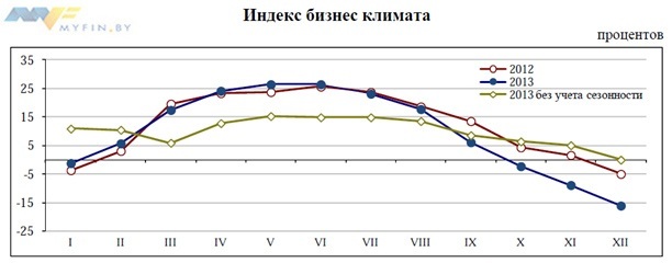 Первая половина 2013 года беды не предвещала: ИБК в среднем складывались на уровне значений аналогичного периода 2012 года. В сентябре, когда все тайное начало становиться явным и вероятность осуществления плановых показателей оказалась под угрозой, реальный сектор экономики приуныл, а бизнес-климат стал ухудшаться.