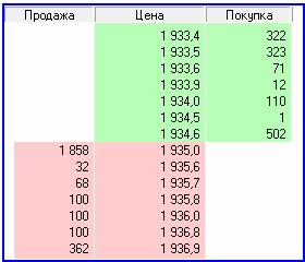 Что собой представляет стакан заявок? На вышеприведенном рисунке есть 14 предложений о совершении сделки – 7 на продажу и 7 на покупку (вернее, предложений может быть бесконечно много, но мы будем видеть лишь самые выгодные на данный момент). Крайние колонки означают количество лотов, которыми оперирует трейдер, центральная колонка – цена. Красная колонка в данном случае – это предложения на продажу. Самая лучшая цена на данный момент – 1935, самая худшая (внизу) – 1936,9. Нетрудно догадаться, что это цена ASK. Зелёный столбик – предложения на покупку, где внизу находится лучшая цена BID (1934,6), и она ухудшается с каждой строчкой. Разница между двумя центральными ценами – это привычный любому трейдеру спред. Поскольку участников рынка Форекс весьма много, и котировки меняются быстро, в окне открытия ордера трейдер видит только две цены – лучшие на данный момент. В то же время, в будущем подобный стакан появится и для терминала MetaTrader.