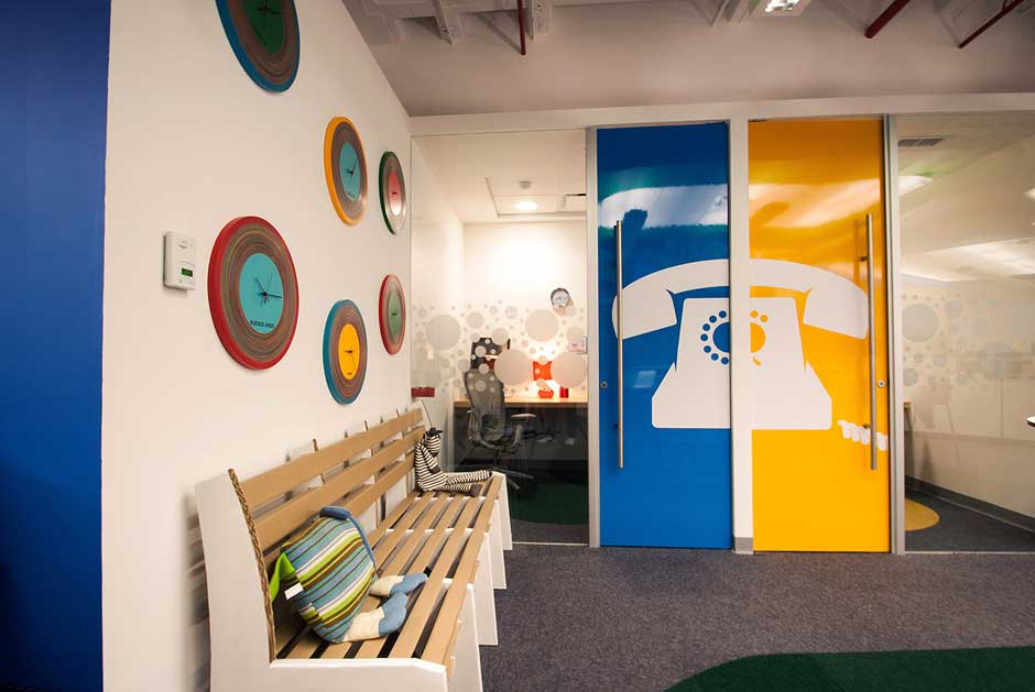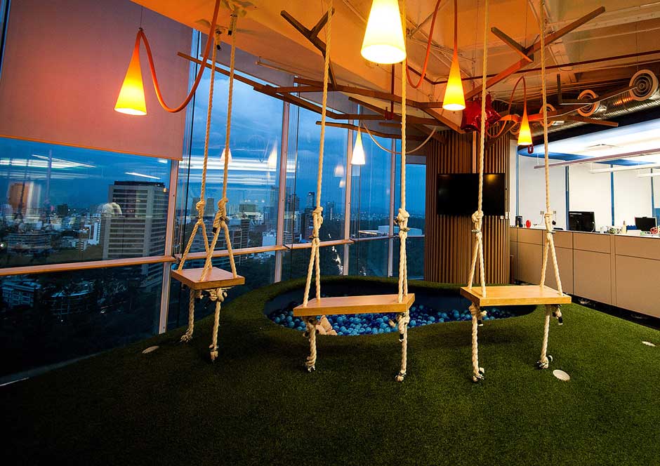 Дизайнеры регионального офиса IT-гиганта вдохновлялись Мехико, воссоздавая его дух в миниатюре. 600 кв.м.для продуктивной работы и творчества. Обратите внимание на скамейку – она из картона. Офис имеет «экологический знак качества» – сертификат LEED.