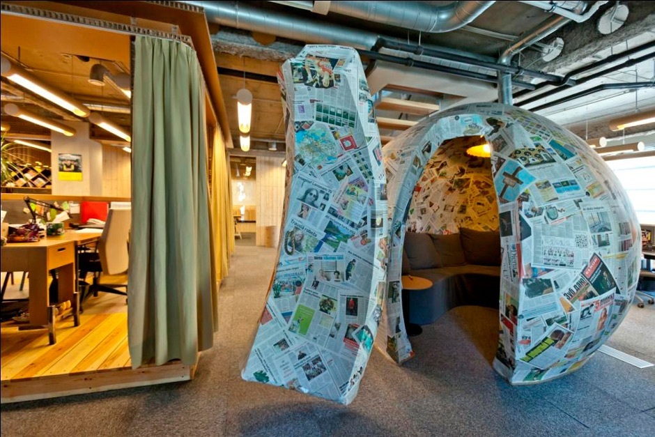 Myfin.by представляет вашему вниманию обзор самых креативных офисов: от картона до деталей самолета. Пространство, в котором мы проводим треть нашей жизни, наш офис, влияет на продуктивность, креативность, исполнительность и прочие рабочие качества. Многие работодатели это хорошо понимают и стремятся создать максимально интересные и функциональные интерьеры.
