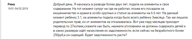 Таким образом, отбывающий наказание родитель уплачивает алименты с заработка, который он получает в исправительном учреждении, и (или) иного дохода, в размерах, установленных ст. 92 Кодекса о браке и семье Республики Беларусь (25% заработка на одного ребенка). На сегодняшний день размер бюджета прожиточного минимума установлен в размере 216 рублей 90 копеек.