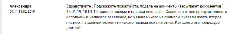 Как долго рассматривается обращение на подачу алиментов