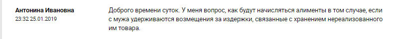 Таким образом, если с родителя, осуществляющего уплату алиментов, удерживаются возмещения за издержки, связанные с хранением не реализованного им товара, то начисление алиментов будет производиться в общем порядке в соответствии со статьей 92 КоБС о размерах алиментов (25% на одного ребенка, 33% на двоих детей и 50% на троих детей) независимо от иных удержаний.