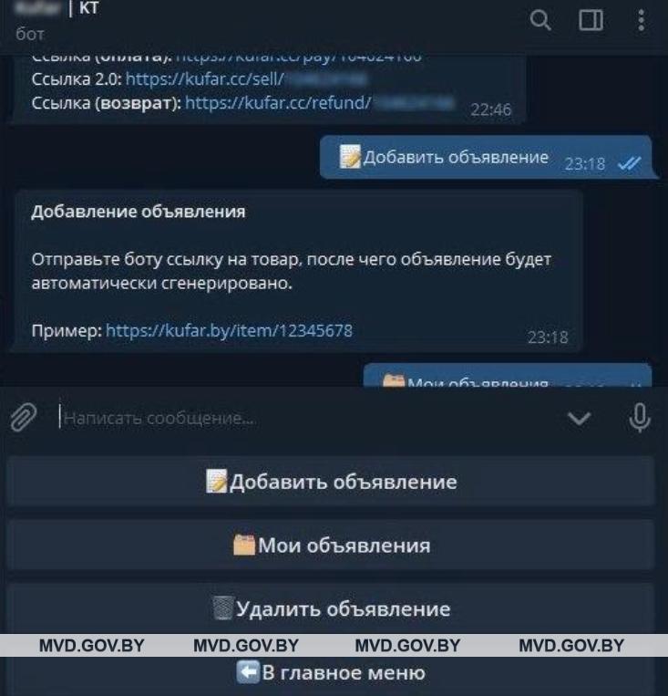 В МВД отметили, что сегодня на «Kufar.by» заблокирована возможность отправления потенциально вредоносных ссылок, поэтому злоумышленники под любым предлогом пытаются увести жертву в мессенджеры. МВД настоятельно рекомендует не делать этого.