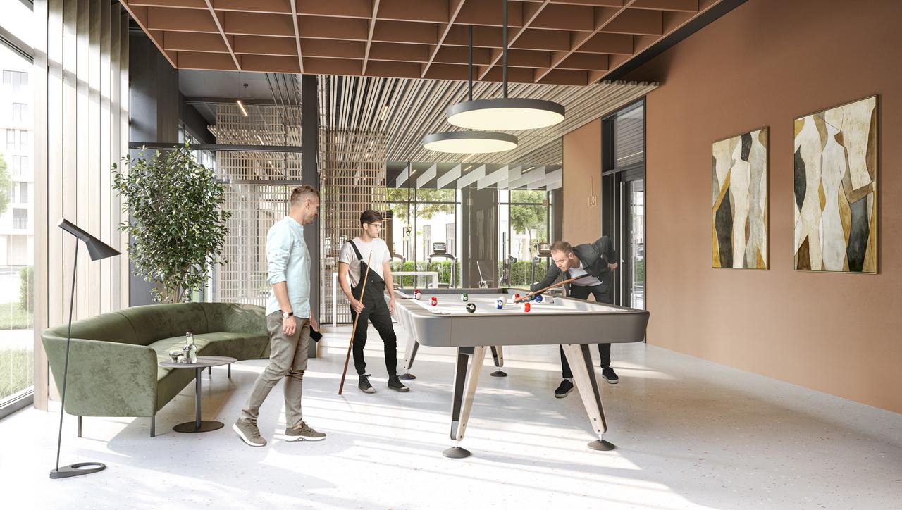 После появления первых домов в квартале появится Клуб жильцов – пространство для общения и развлечений площадью 800 квадратных метров. В него войдут кинотеатр, оборудованный спортивный зал, пространство для вечеринок, бильярд, коворкинг и зона для детских игр.