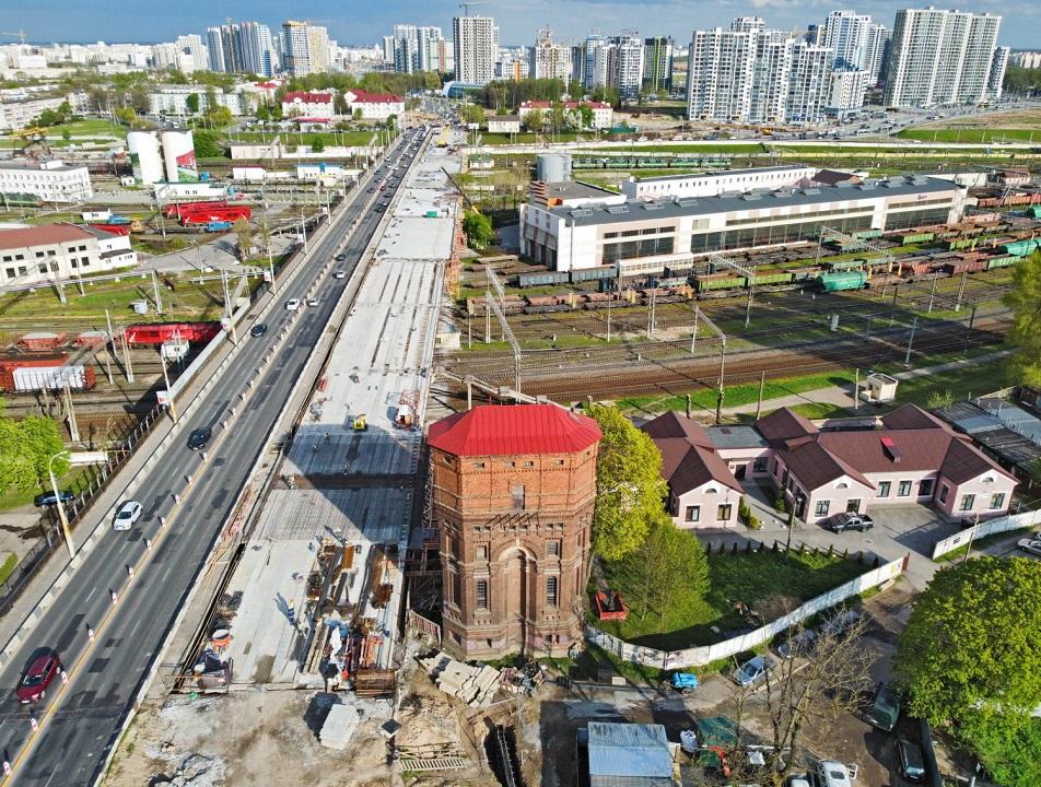 Уникальное для белорусской столицы трехуровневое инженерное сооружение общей площадью 166 м² примыкает к проспекту Жукова, который сейчас активно расширяют до восьми полос. Совсем рядом находится ТЦ Outleto и железная дорога, а недалеко расположено минское локомотивное депо. Также одна из станций проектируемой 4-й ветки метро должна быть построена в непосредственной близости от башни.