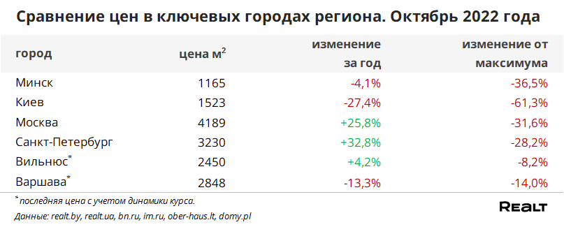 В большинстве ближайших крупных городов соседних стран по сравнению с предыдущим месяцем цены в долларовом эквиваленте снизились не более, чем на 2.5%.