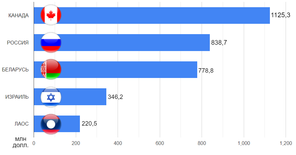 К примеру, Гватемала – небольшое государство в Центральной Америке – импортировала удобрений из Беларуси на сумму $40,9 млн. Однако стоит уточнить, что было это в начале года (январь и март). Затем, по данным Банка Гватемалы, закупки прекратились.