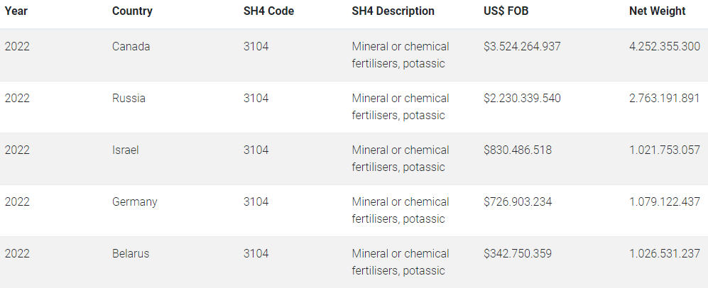 Наибольших успехов добилась Канада и в частности компания Nutrien, которая является крупнейшим производителем калийных удобрений в мире. По итогам трех кварталов 2022 года Канада закрепила за собой статус лидера по поставкам калия в Бразилию, Китай и Индию, продолжая при этом отгружать продукцию и на рынки других стран.