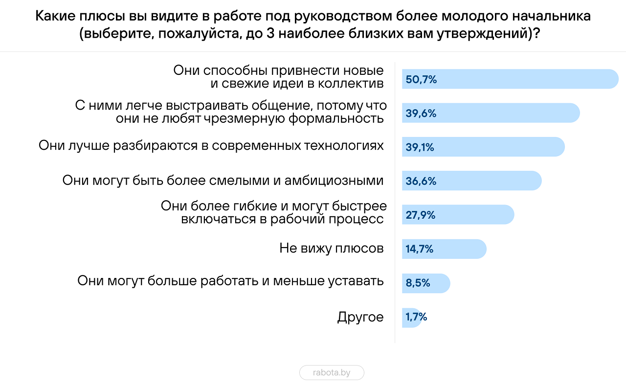 Специалисты сайта по поиску работы и сотрудников rabota.by провели опрос среди более чем 1 тыс. соискателей, чтобы узнать об их отношении к возрасту руководителя.