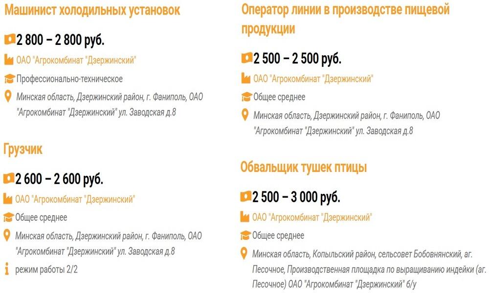 Также в списке вакансий от агрокомбината «Дзержинский» значатся: