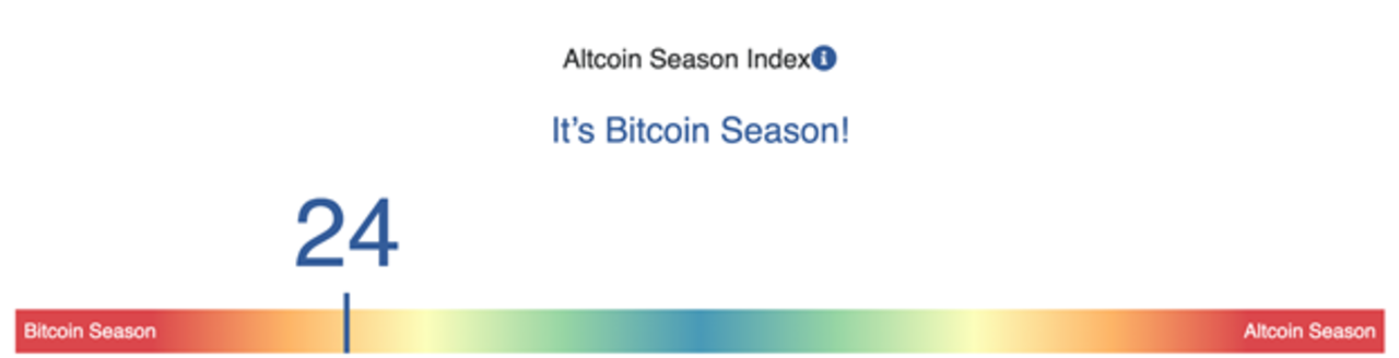 Есть еще специально высчитываемый индекс альтсезона, который готовится платформой Blockchaincenter.net. И пока вердикт однозначный - сезон биткоина.