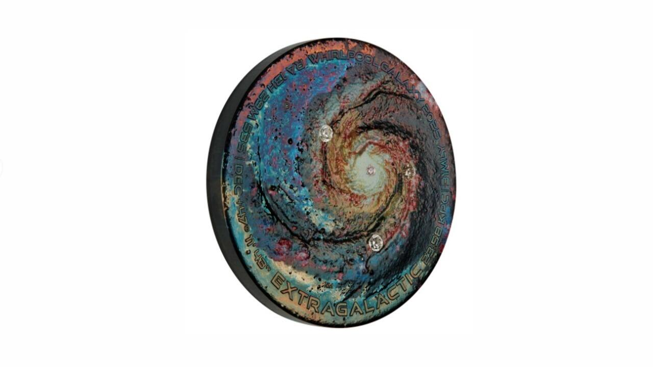 «По всей поверхности обеих сторон монета покрыта патиной, которая по-настоящему погружает в тайны космических глубин», – отмечают создатели монеты.