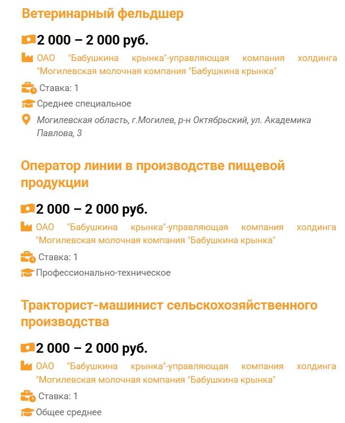 Также ОАО «Бабушкина крынка» нужны ветеринарный фельдшер, оператор линии в производстве пищевой продукции, тракторист-машинист.