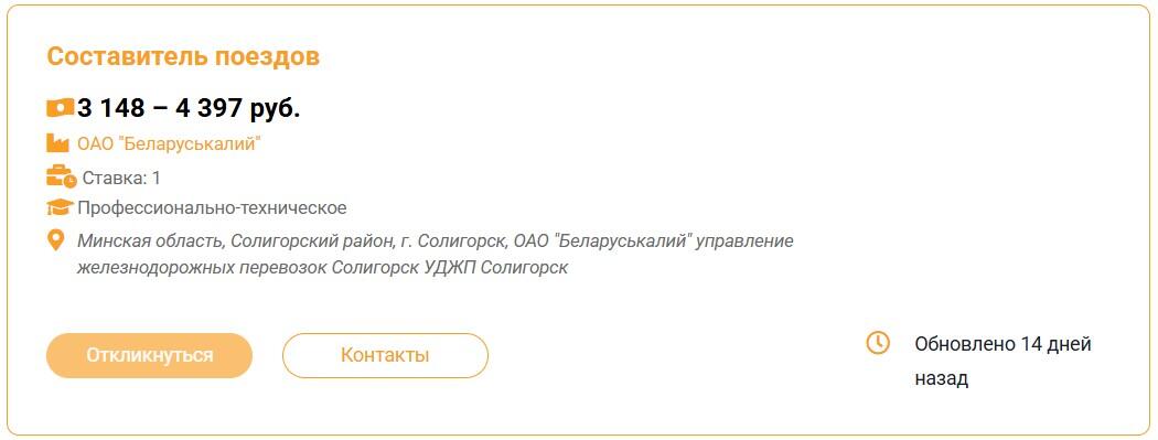 - составитель поездов (от 3 148 до 4 397 BYN).