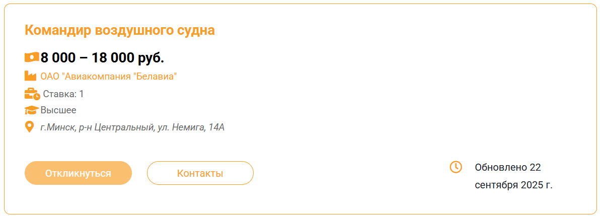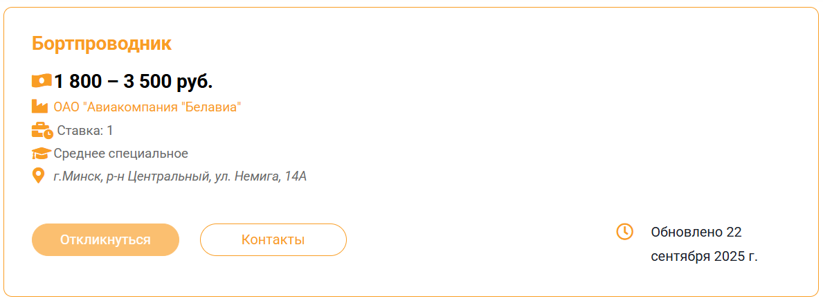 На сайте службы занятости сейчас опубликованы 16 вакансий, нанимателем по которым выступает ОАО «Авиакомпания "Белавиа"». Давайте посмотрим, кого ищут, сколько обещают платить, какие требования к кандидатам.