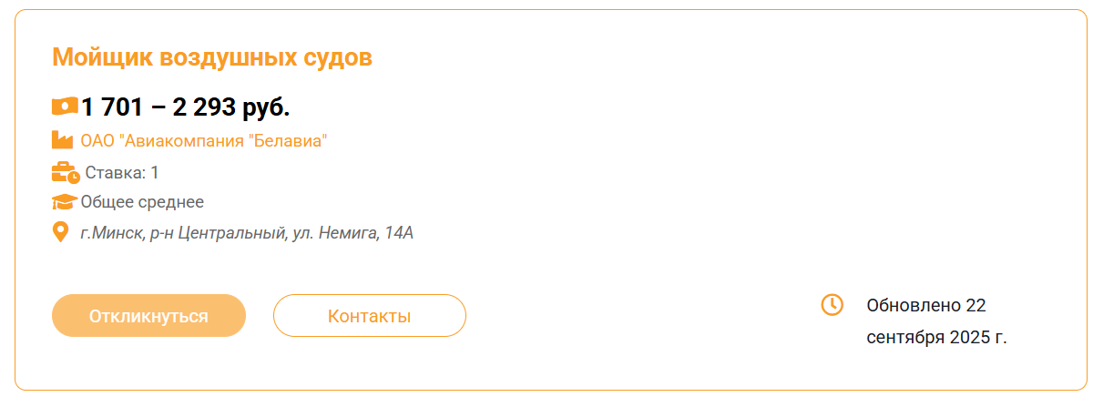 Можно не иметь никакого образования, кроме школьного, при этом работать в «Белавиа» – уборщиком территорий. В вакансии указана зарплата 1484-2054 byn.