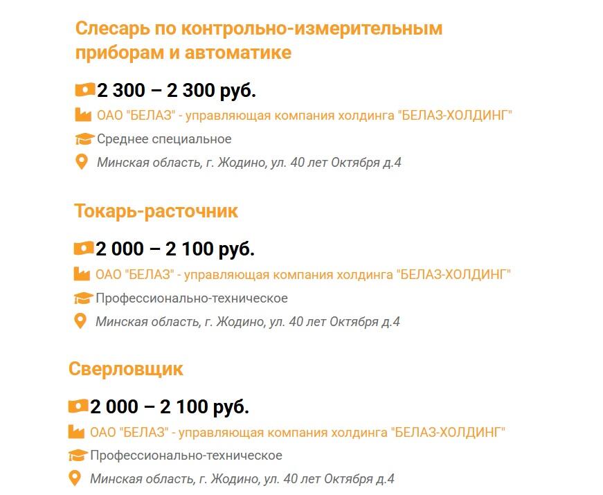 Также в списке вакансий от БЕЛАЗа значатся слесарь по контрольно-измерительным приборам и автоматике, токарь-расточник, сверловщик.