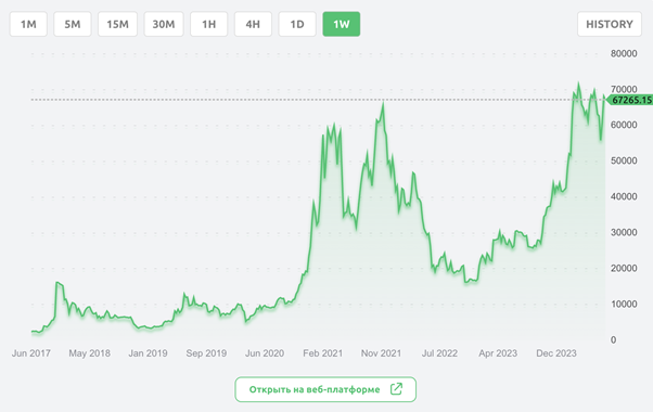 Стоимость биткоина в 2017-2024 годах
