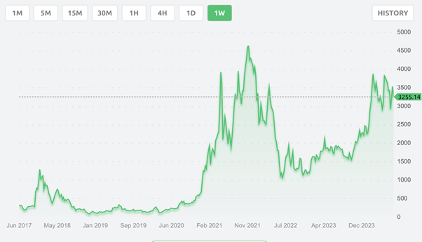 Стоимость эфира в 2017-2024 годах