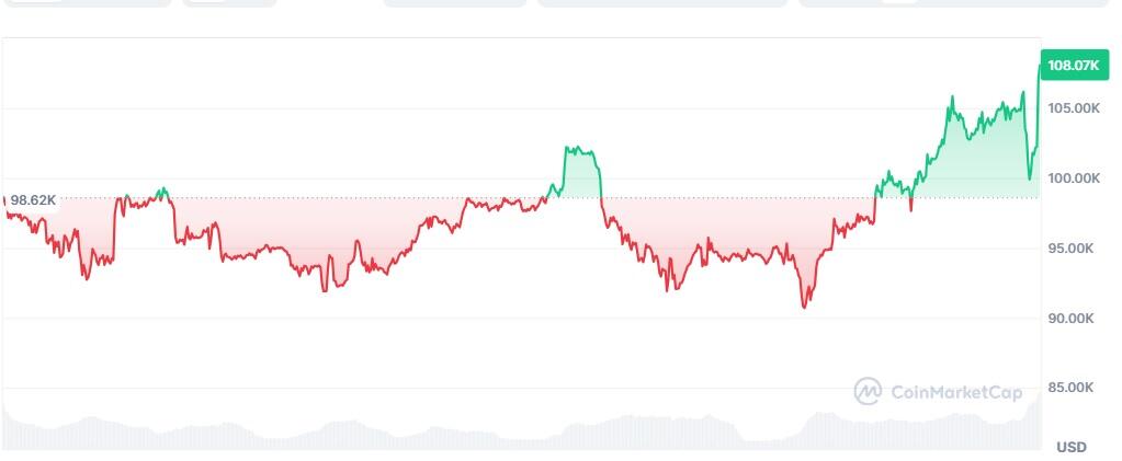 Как сообщается, цена биткоина достигла очередного исторического максимума в $109,24 тыс., подорожав на 5,5% в понедельник.