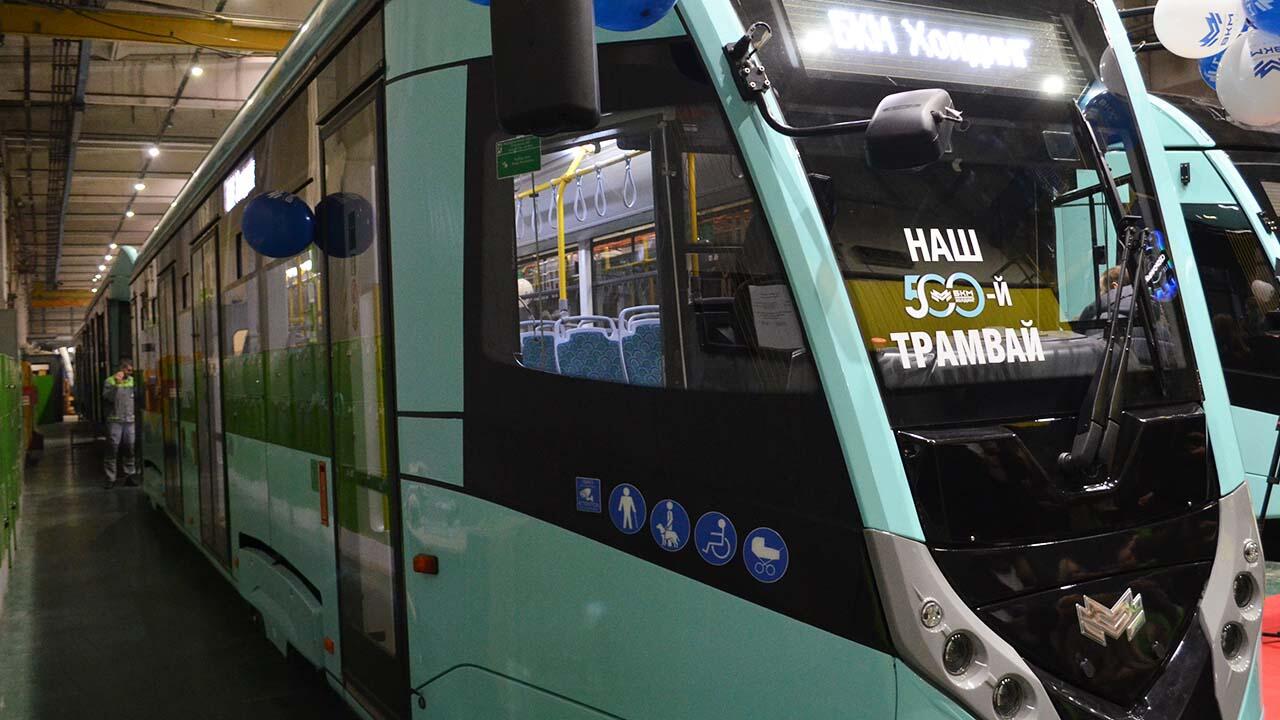 Сегодня в цеху завода «БКМ Холдинг» прошла презентация юбилейного 500-го трамвая, выпущенного предприятием. Низкопольный односекционный трамвай модели Т811 будет перевозить столичных пассажиров.