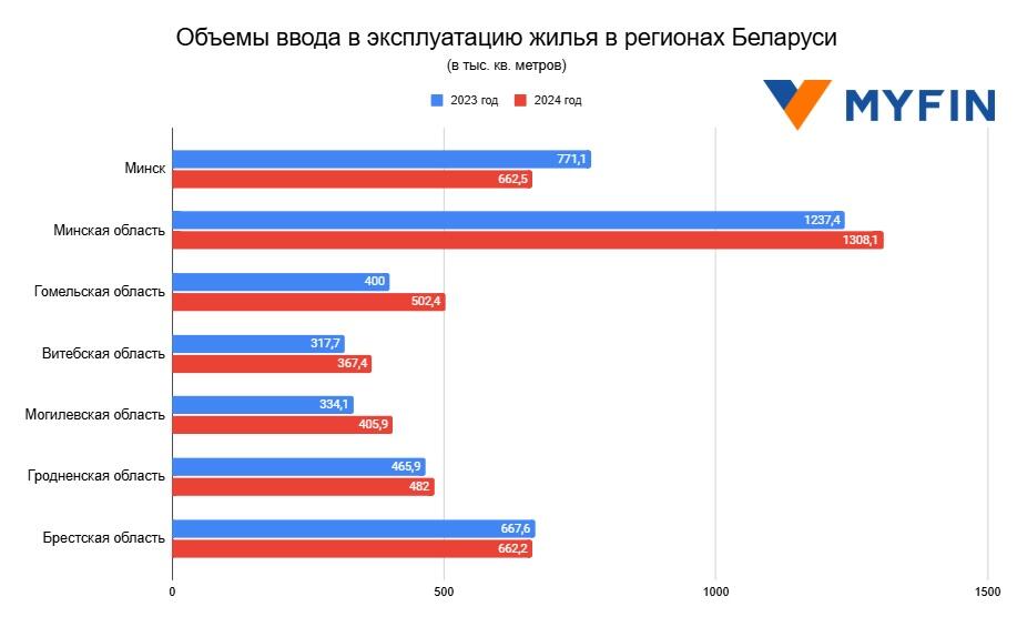 Для граждан, состоящих на учете нуждающихся в улучшении жилищных условий, ввели в эксплуатацию 1427,2 тыс. «квадратов» (-10,2% к 2023 году).