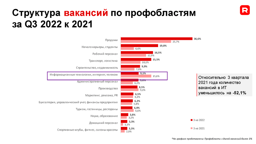 Стоит отметить, что, несмотря на сложившуюся ситуацию, количество вакансий все еще было выше, чем в год пандемии, – по сравнению со 2-м кварталом 2020 +2,8%.