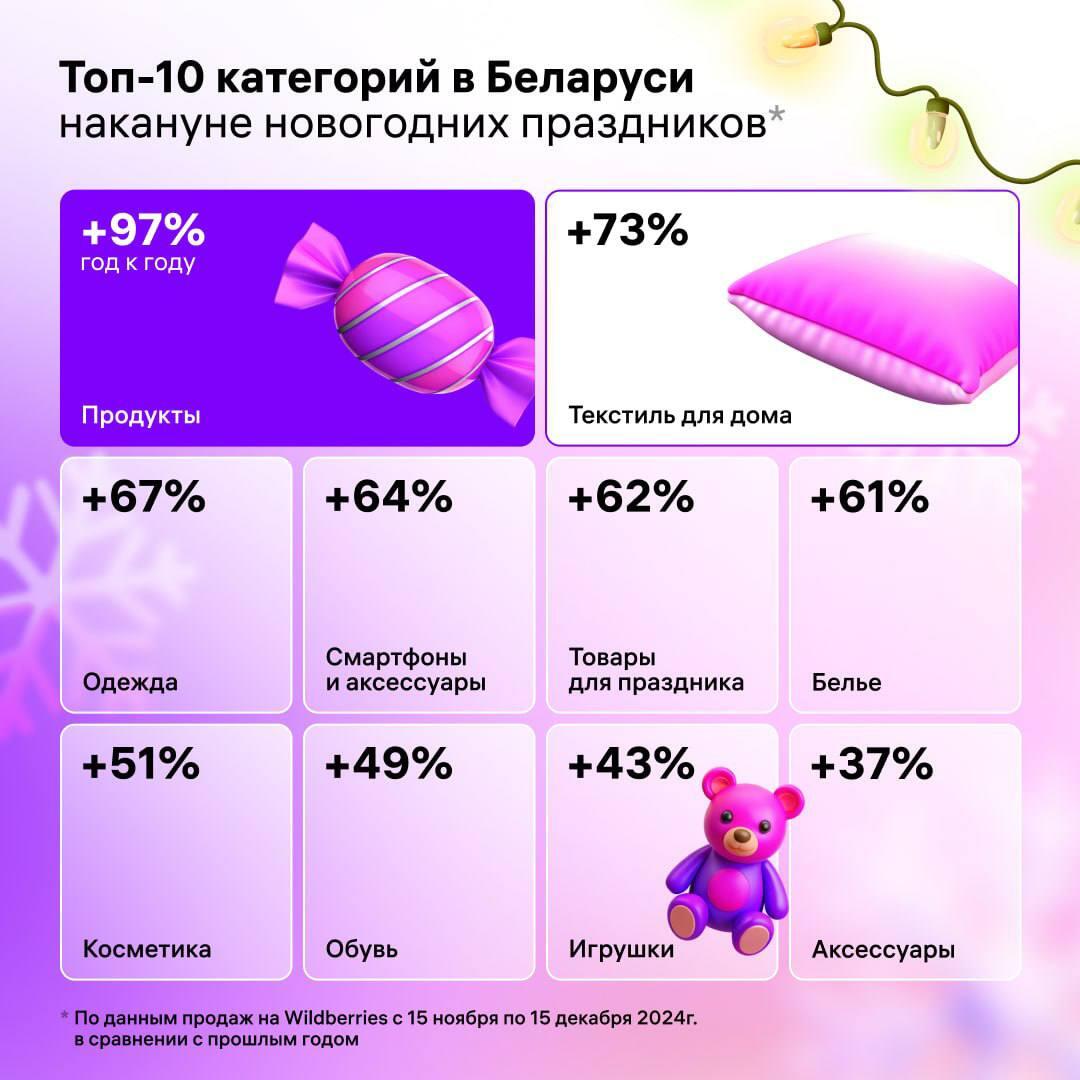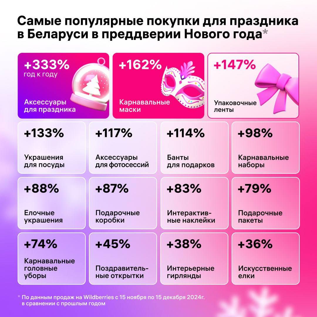 В преддверии зимних праздников российский маркетплейс Wildberries рассказал о товарах, которые были особенно популярны у белорусских пользователей площадки.
