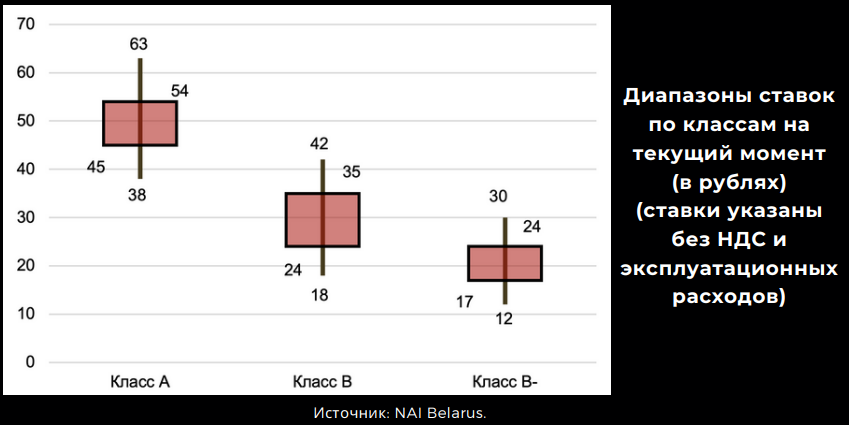 Коммерческий рынок по доступности аренды уже сравнялся с коммунально-ведомственным предложением. Безусловно, в ведомственном сегменте можно найти предложения и по 3,8–4 руб. за 1 кв. м, однако хорошая локация с относительно качественными помещениями и здесь оценивается на уровне 22–26 руб., что в современных условиях является уровнем не только класса «В-», но и «В» (В+).
