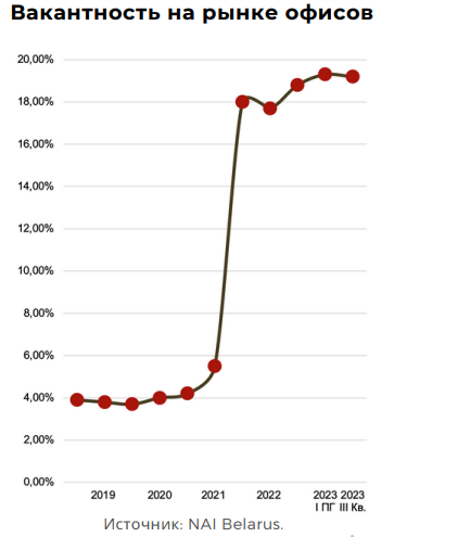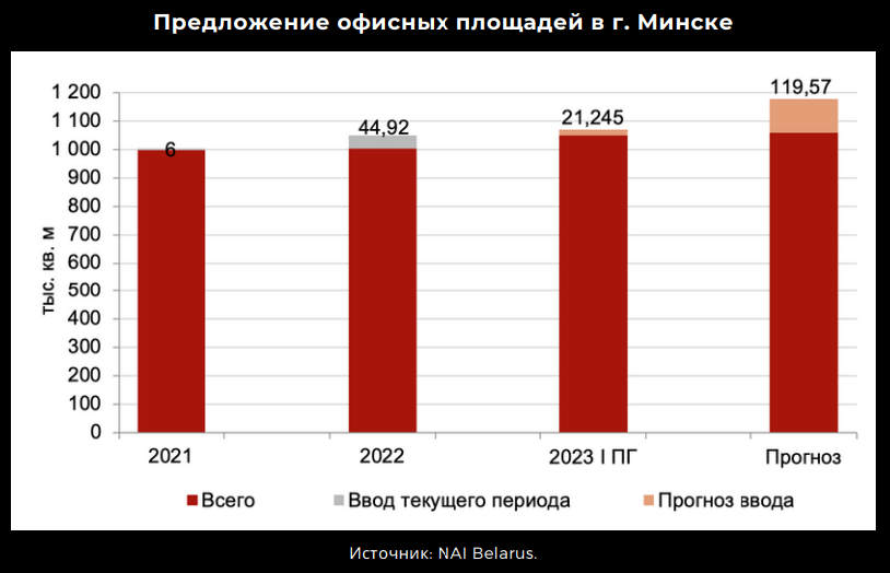 По состоянию на конец III квартала 2023 года в Минске предлагалось около 1,071 млн кв. м арендной площади в современных бизнес-центрах всех классов.