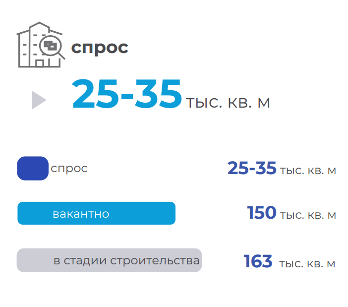 Растет интерес арендаторов к новым объектам, находящимся в хороших локациях с доступом к различным видам транспорта и инфраструктуре, высоким уровнем технологической оснащенности и инновационным дизайном. В тех объектах, которые обеспечивают комфортные условия для сотрудников или повышают эффективность бизнес-процессов, арендаторы готовы рассматривать более высокие арендные ставки. Данные тенденции можно с осторожностью рассматривать как предпосылки для вывода на рынок качественно новых офисных проектов.