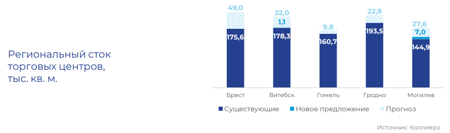 После ввода в эксплуатацию торгово-развлекательного центра Triniti в Гродно (GLA (арендопригодная площадь) – 63,2 тыс. кв. м) во втором полугодии 2019 года, крупные региональные объекты в областных городах не создавались.
