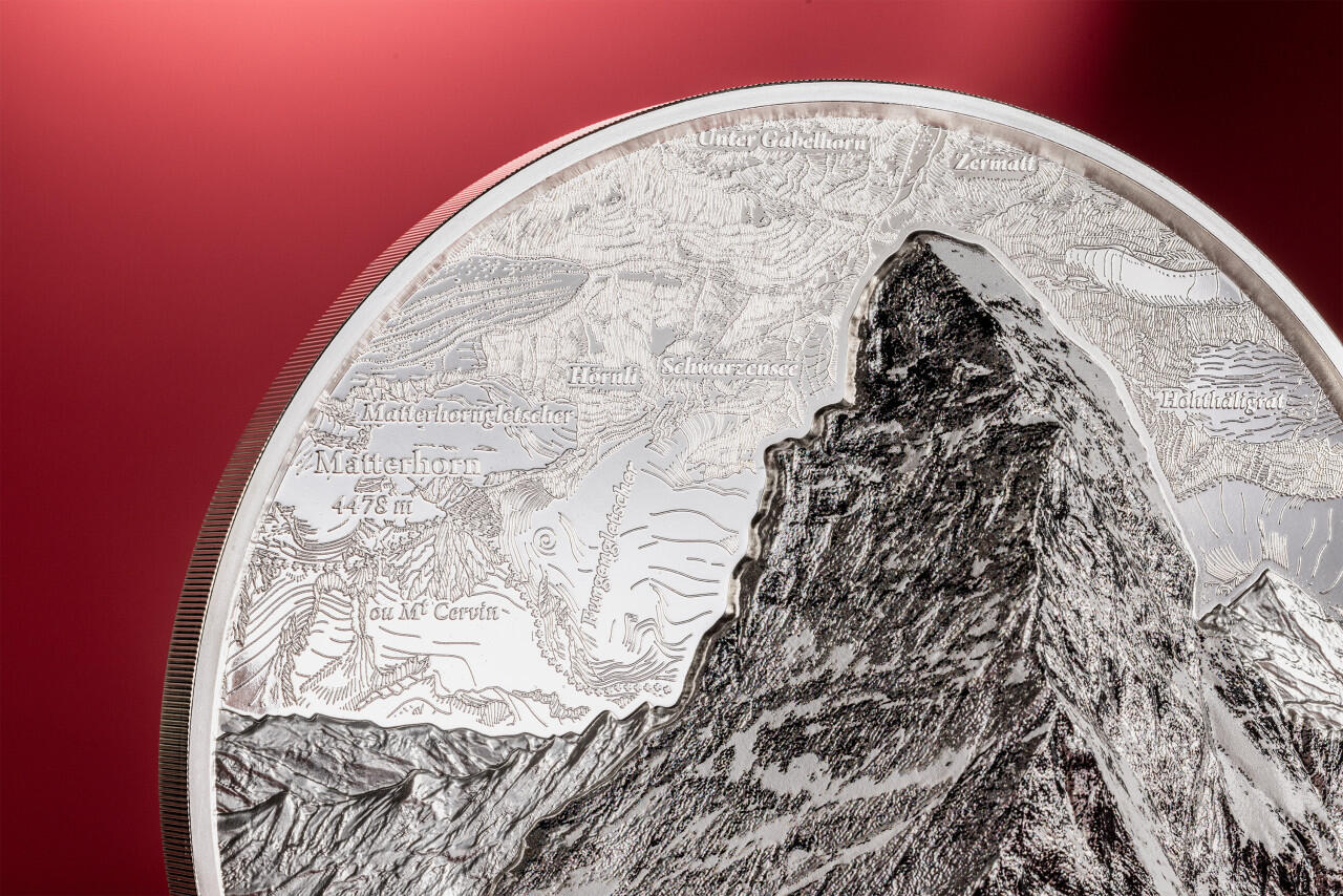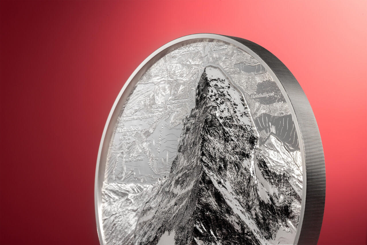 Двухкилограммовую монету представила в начале этого года Швейцария. Памятная серебряная монета номиналом 250 франков выпущена к 160-летию первого восхождения на гору Маттерхорн.