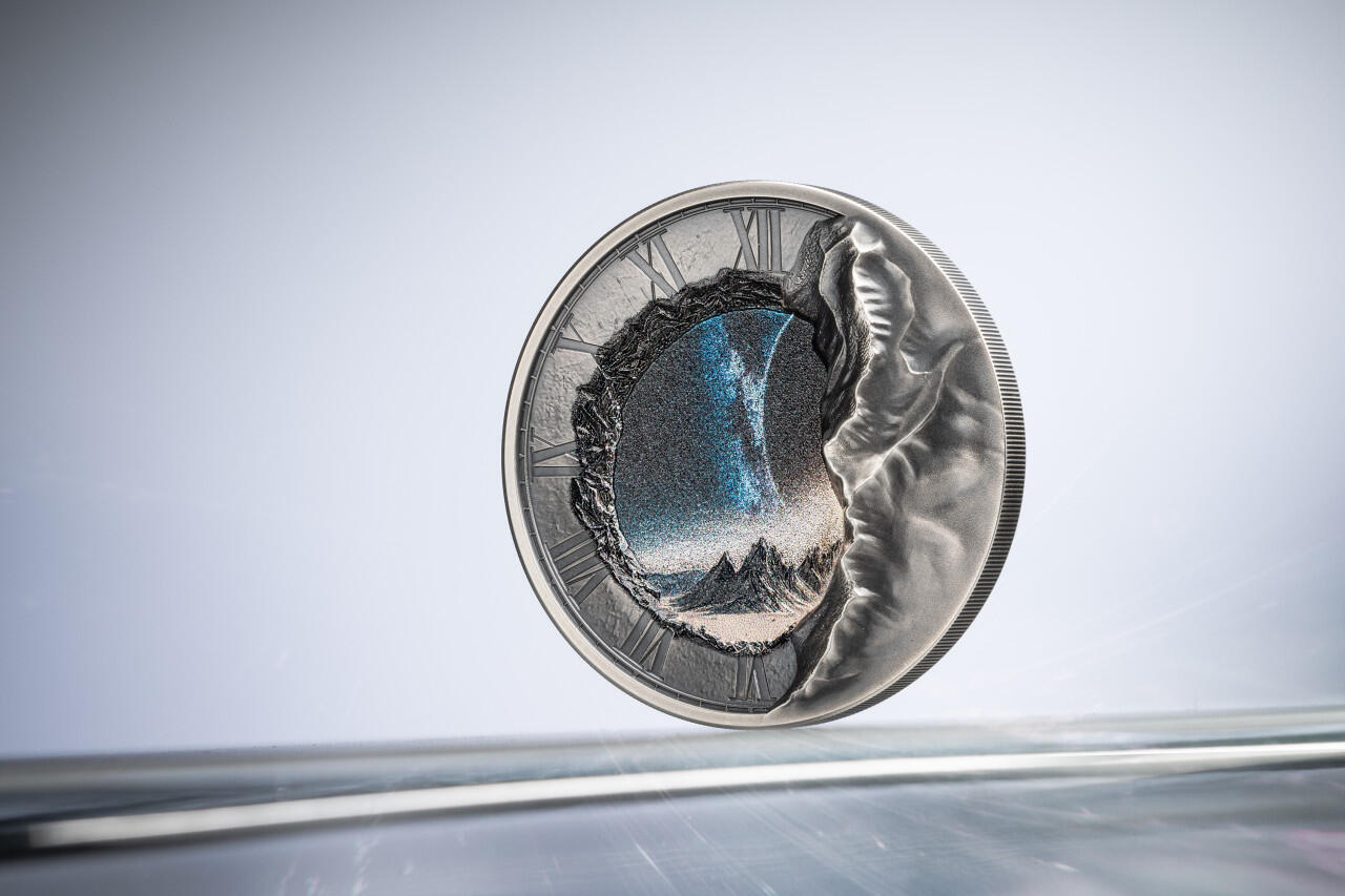 Кроме того, от имени Островов Кука был выпущен ограниченный тираж необычных монет под названием «Портал времени». Центральной темой стало изображение временного портала. По краям можно заметить римские цифры, выстроенные в форме циферблата, что символизирует течение времени.