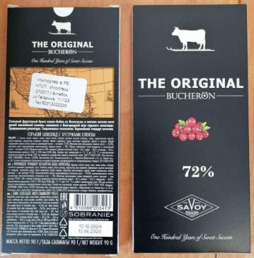 В реестр опасной продукции внесли горький шоколад Bucherön The Original с кусочками клюквы.