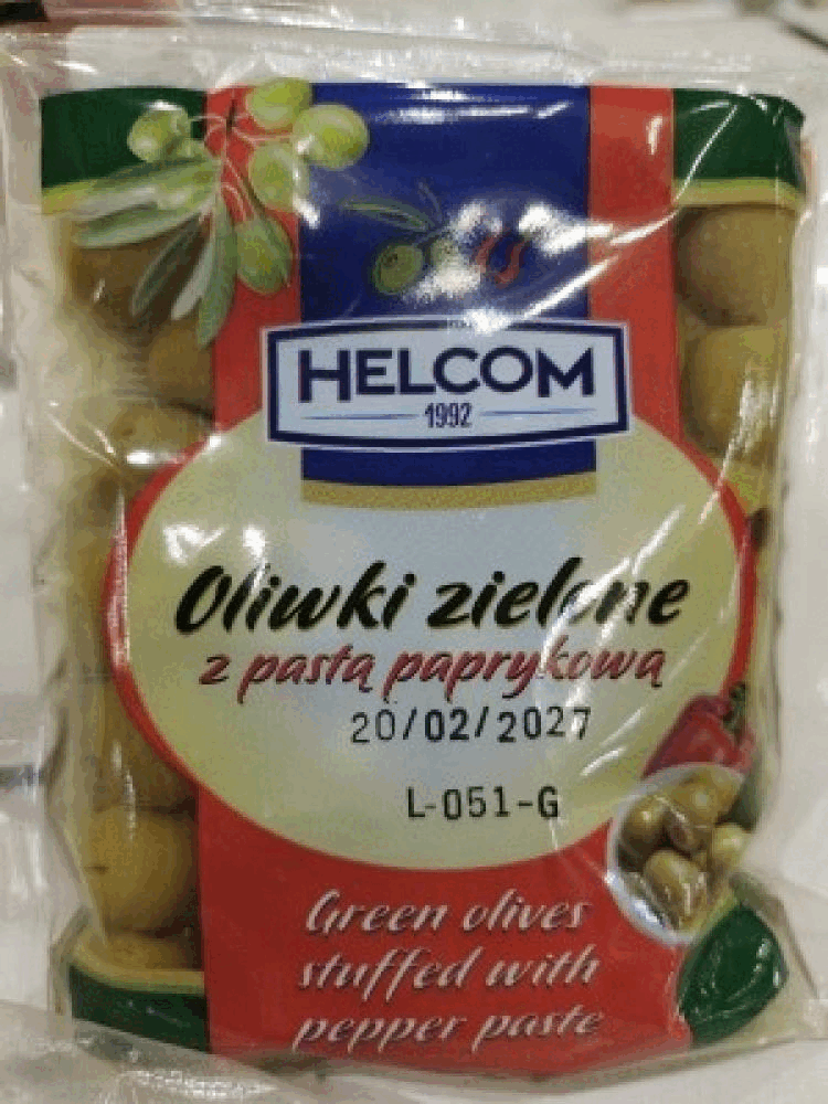 В реестр внесли оливки зеленые фаршированные пастой из паприки товарного знака HELCOM.