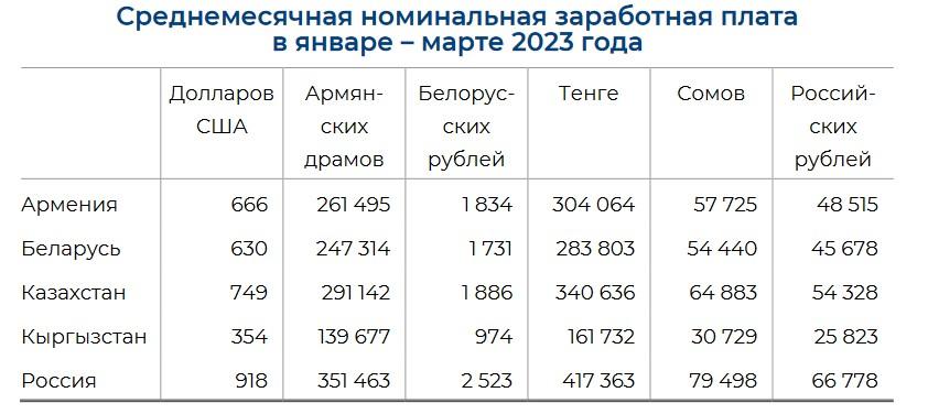после России, Казахстана и Армении. По данным ЕЭК, средняя зарплата в России в