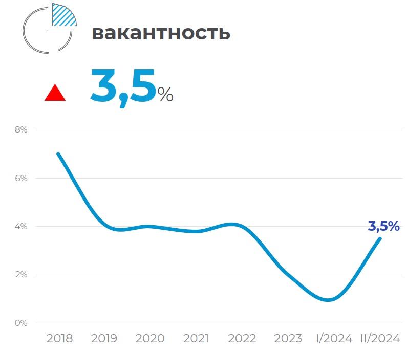 При этом вакантность за тот же период выросла на 2,5 процентного пункта до 3,5% – тенденцию не смогла переломить даже крупная арендная сделка на 14 тыс. квадратных метров с участием маркетплейса Ozon.