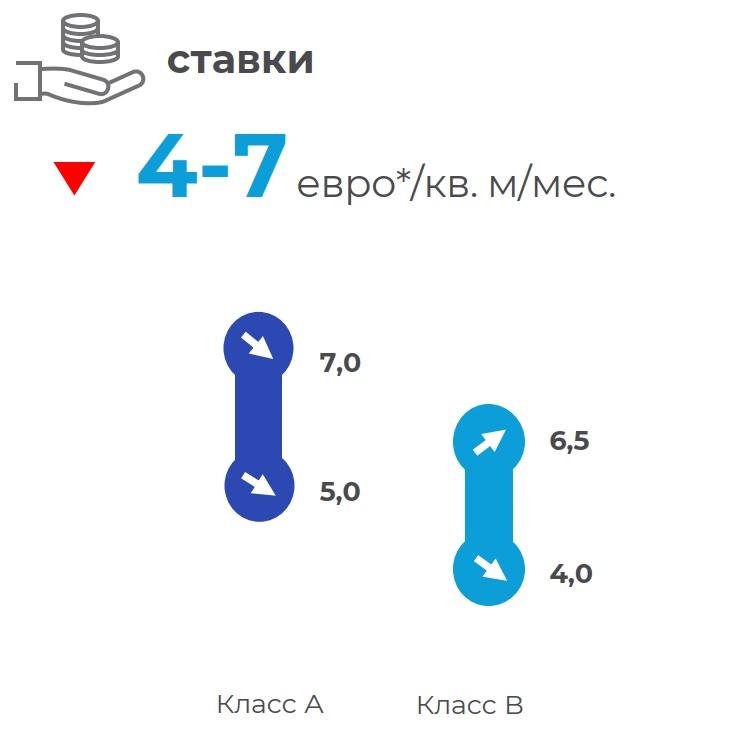 В компании ожидают роста вакантности до 4% и более, а также сокращения месячных арендных ставок до 4-6 евро за «квадрат» в ближайшей перспективе.