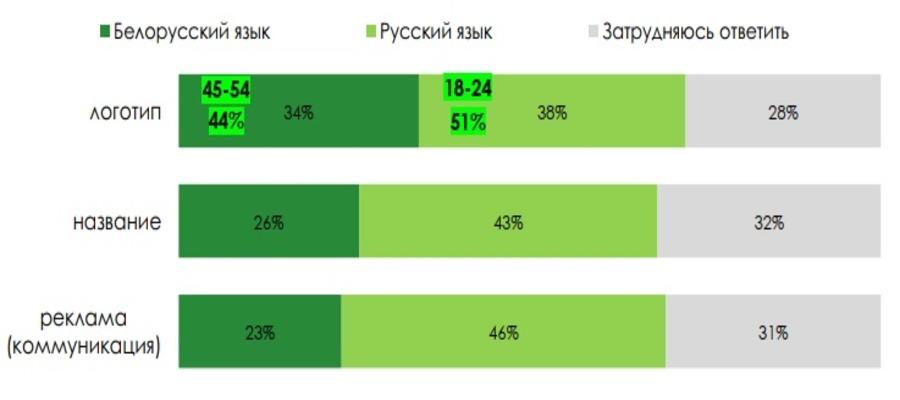 Респонденты также отмечают, что при прочих равных условиях обратят внимание на товар с названием и рекламой (коммуникацией) на русском языке. А вот в ситуации с логотипом практически равное количество – на логотип на русском или белорусском языках.