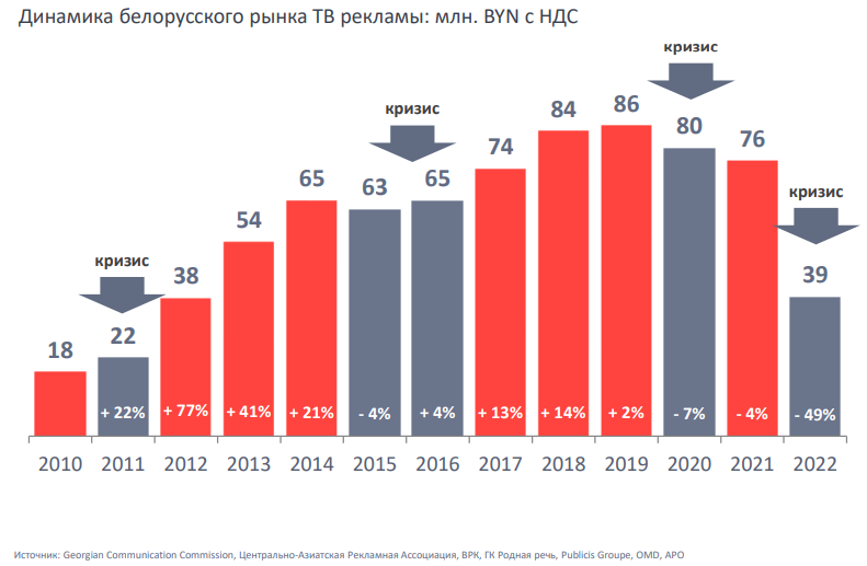 Санкционное давление на экономику Беларуси, одномоментный уход крупных зарубежных рекламодателей и остановка рекламных кампаний Procter & Gamble, Mars, Jacobs Douwe Egberts, Ferrero, Nestle и др. оказали значительное влияние на белорусский рекламный рынок.