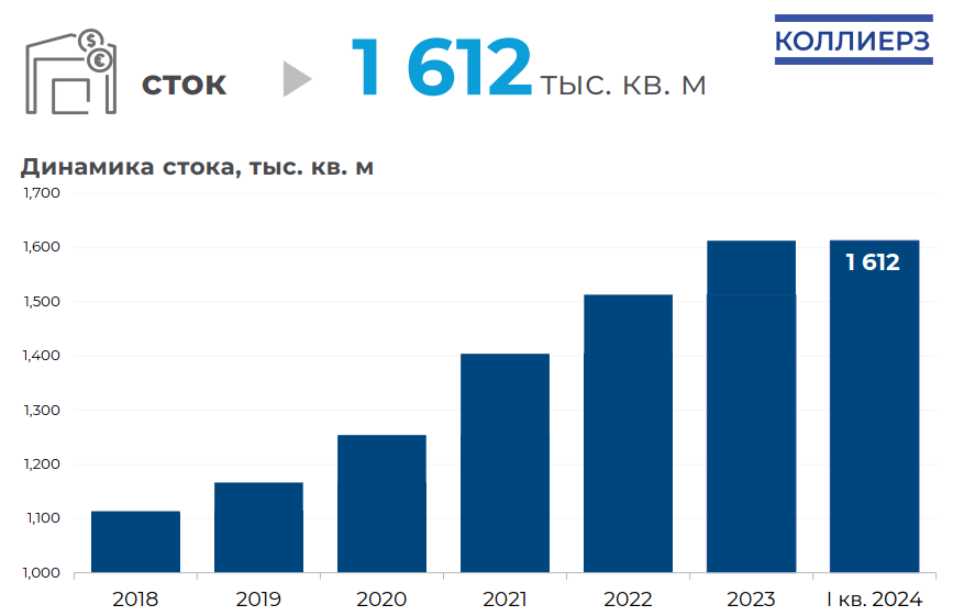 При этом нового предложения на рынке нет, а сток сохраняется в объеме 1612 тыс. кв. м.
