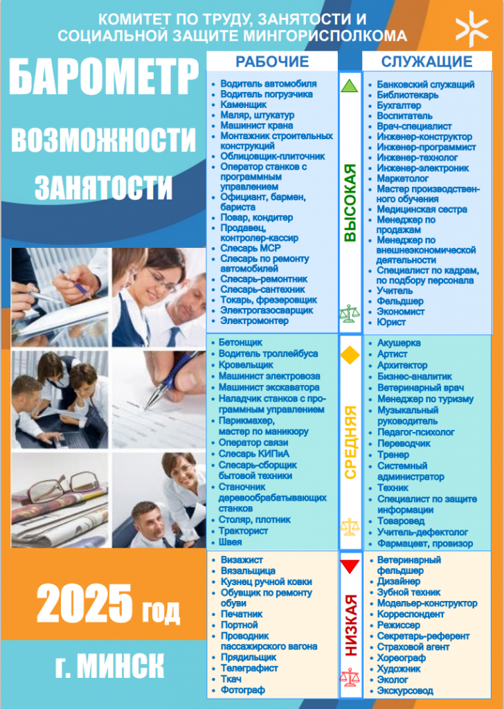 Комитет по труду, занятости и социальной защите Мингорисполкома опубликовал «Барометр возможности занятости в Минске в 2025 году».