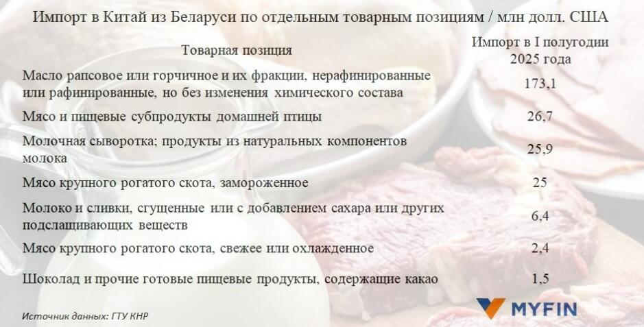 В 2025 году КНР продолжает осуществлять закупки из Беларуси по отдельным продовольственным товарным позициям.