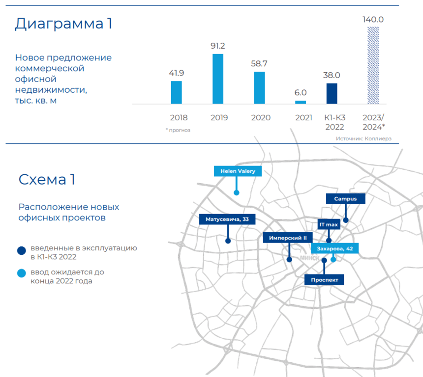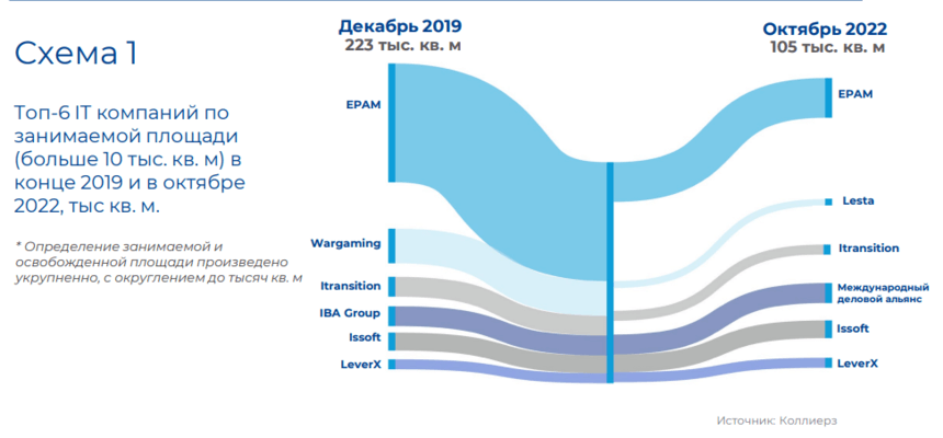 За прошедший период 2022 года EPAM освободил бизнес-центр на Толбухина 3а, Wargaming провел реструктуризацию и значительно сократил арендуемые площади в бизнес-центрах «Футурис» и « Волна». Не такие крупные компании также сокращали арендуемые площади или вовсе уходили с рынка.