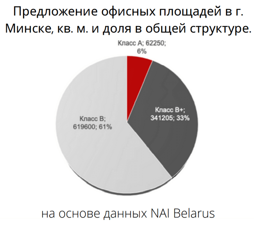Всего на конец III квартала рынок качественных и крупных коммерческих офисов составляет немногим более 1020 тыс. кв. м арендной площади (GLA). Основной объем предложения, практически 620 тыс. кв. м, приходится на класс «В». Класс офисов «В+» представлен на рынке площадью >340 тыс. кв. м. Наименее представлен класс «А». В него включены только 4 офисных объекта с суммарной арендной площадью лишь немногим более 62 тыс. кв. м.