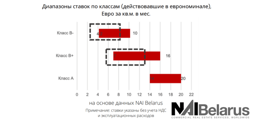 Исключением остался класс «А». Здесь ценовая ситуация более стабильная. Даже в этот сложный период были факты аренды по ставкам в 15-20 евро в эквиваленте без НДС, а по старым договорам без пересмотра продолжают действовать ставки и до 25 евро.
