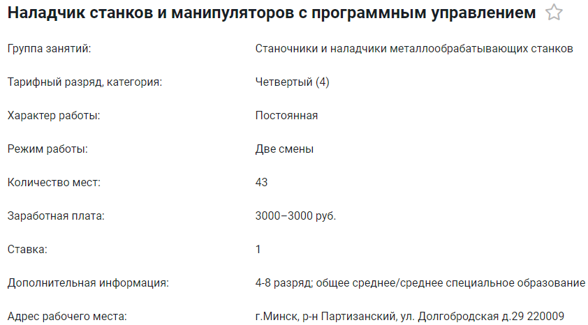 Зарплату в районе 3000 руб. обещают обрубщику, а также наладчику станков и манипуляторов с программным управлением.